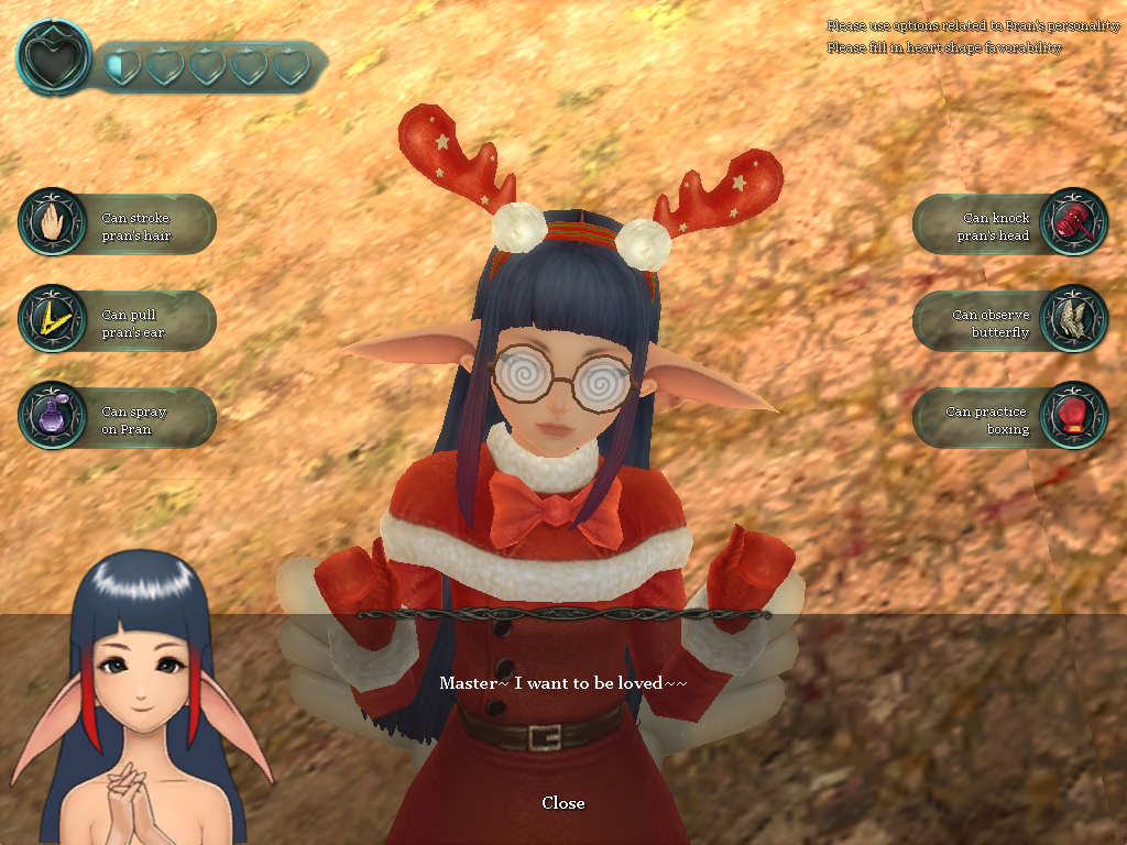 In this type of interaction, there are six actions for you to choose. You will have to select and perform one of the actions on your pran depending on her personality.